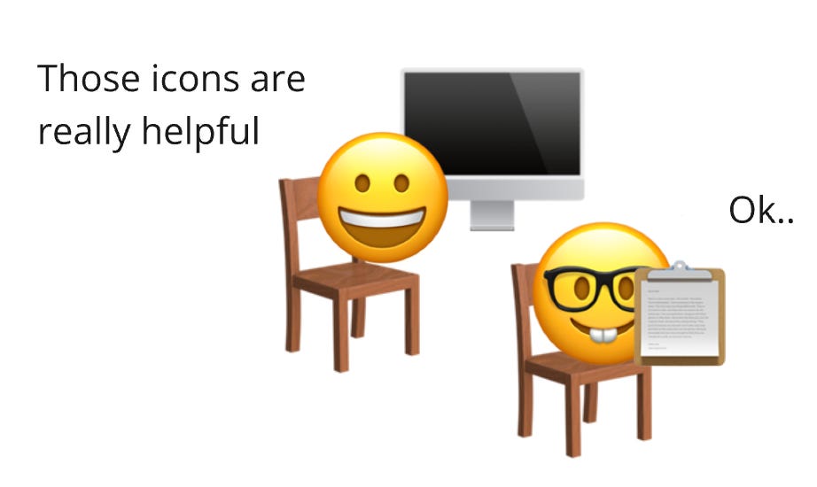 Let’s say you did a user test and the participant mentioned the icons are helpful. It’s one of the many things said during the study; you jot it down and move on.