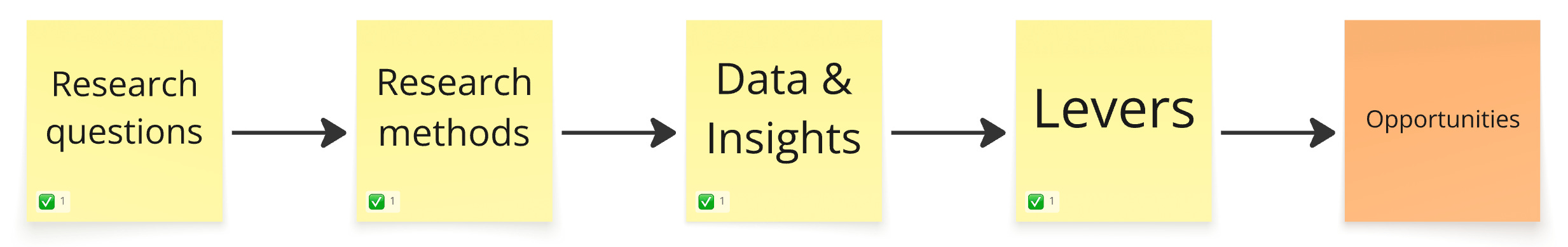 Collecting them all is boring, plus I think you really only need 5 to get from Research questions (the starting point) to Opportunities (the endgame).