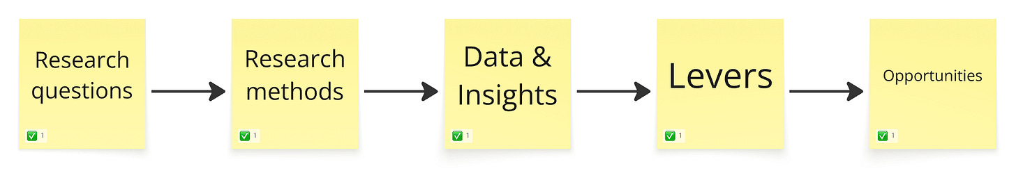 Thinking with the end in mind (the insight you need) and seeing your four options side by side makes it way easier to ask better research questions.
