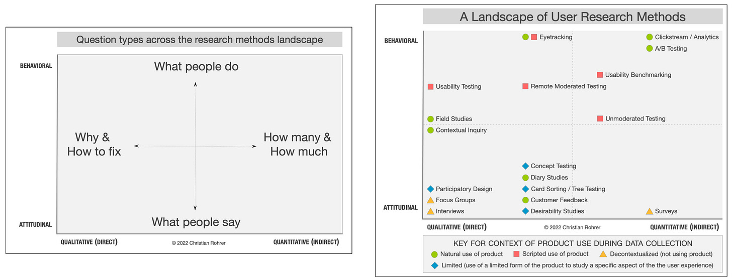 And yes, you can combine this with the Landscape of User Research methods framework if you want. Some examples: