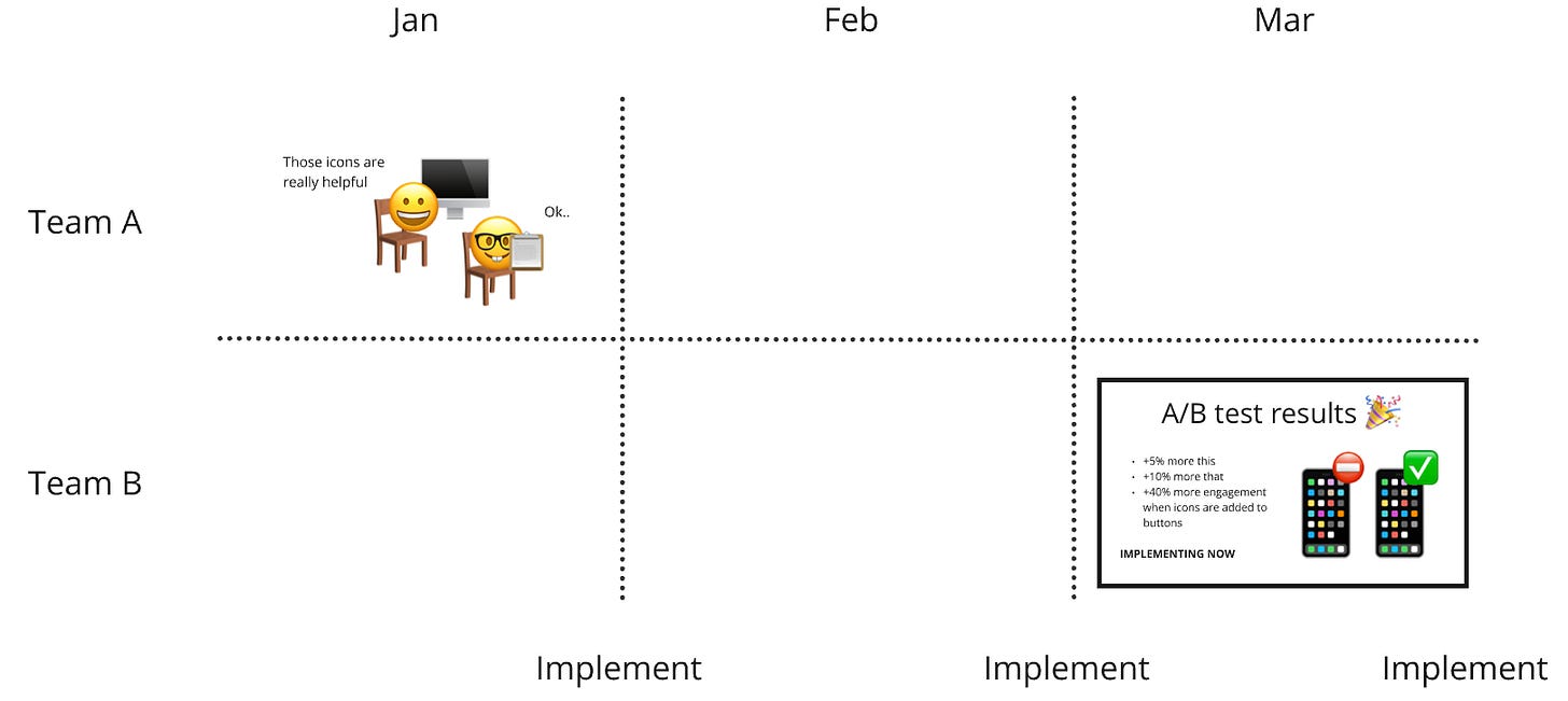 You did the user test and implemented all the recommendations of that study at the end of the month. By the time it’s March you’ve moved on to other things and forgot about that participant saying icons are nice.